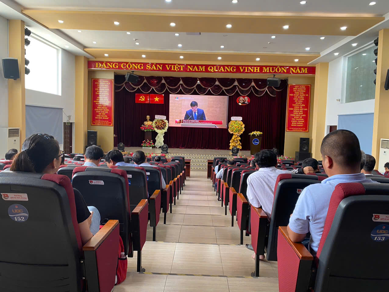 Sáng ngày 16 tháng 9 năm 2025, cùng với các cơ quan, đơn vị, địa phương, tổ chức Đảng trên toàn quốc, 273 đảng viên thuộc 22 chi bộ trực thuộc Đảng bộ công ty TNHH MTV Thoát nước đô thị TPHCM (UDC) đã tổ chức hội nghị trực tuyến tại 4 địa điểm: trụ sở văn phòng công ty (số 4 Nguyễn Thiện Thuật, Bình Thạnh), hội trường Dương Quảng Hàm (số 114/12, phường An Nhơn), hội trường Lý Thường Kiệt(số 297/2 Lý Thường Kiệt Phường Phú Thọ) và hội trường văn phòng An Hạ (Hóc Môn). Chương trình được nối sóng trực tiếp từ điểm cầu Đảng ủy Ủy ban Nhân dân Thành phố Hồ Chí Minh, được tổ chức tại hội trường Diên Hồng (Hà Nội) nhằm quán triệt và triển khai thực hiện 4 Nghị quyết quan trọng của Bộ Chính trị nhằm thúc đẩy sự phát triển bền vững và toàn diện của đất nước trong giai đoạn mới. Hội nghị có sự tham gia của các đồng chí lãnh đạo Đảng, Nhà nước, Chính phủ cùng đông đảo cán bộ, đảng viên từ các bộ, ban, ngành Trung ương và địa phương.