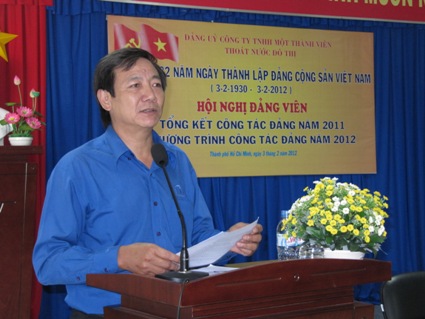 Đồng chí Nguyễn Trọng Luyện - Bí thư Đảng ủy Công ty tổng kết công tác Đảng năm 2011