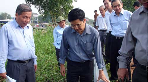 Bộ trưởng Cao Đức Phát (phải) và lãnh đạo TP.HCM thị sát rạch bờ bao Thủ Đức - Ảnh: H.Văn