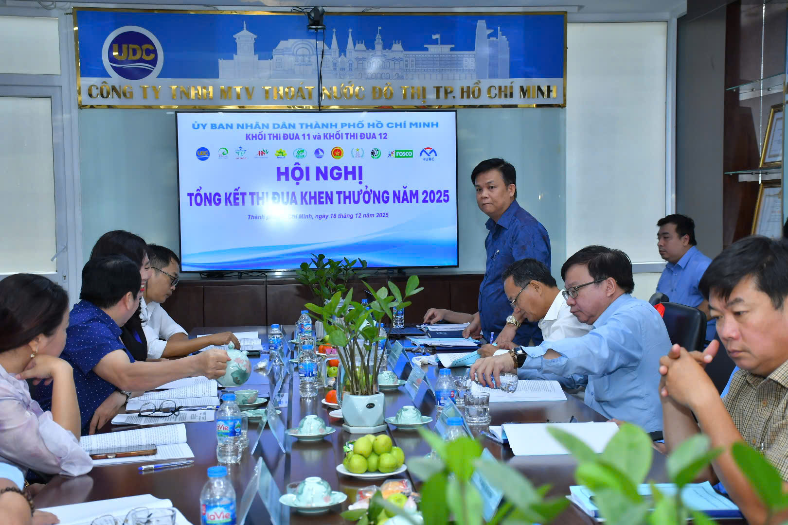 Ngày 18/12/2025, Khối thi đua 11 đã tổ chức Hội nghị Tổng kết công tác thi đua khen thưởng năm 2025 tại trụ sở Công ty TNHH MTV Thoát nước TP.HCM (UDC) nhằm đánh giá toàn diện các thành tựu sản xuất kinh doanh và định hướng hoạt động năm 2026. Với tinh thần làm việc dân chủ, Hội nghị đã thống nhất bình chọn UDC là đơn vị dẫn đầu Khối năm 2025 với số điểm đạt 984/1000, đồng thời đề nghị tặng Cờ thi đua của Ủy Ban Nhân Dân Thành phố cho UDC vì những thành tích xuất sắc mà đơn vị đã nỗ lực đạt được trong năm 2025.