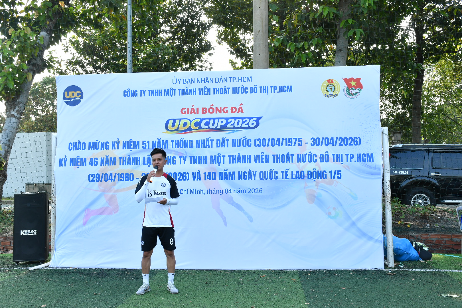 Sáng ngày 08/4/2026, tại sân bóng đá Chu Văn An, Công ty TNHH MTV Thoát nước đô thị TP.HCM (UDC) đã long trọng tổ chức lễ khai mạc Hội thao bóng đá UDC Cup 2026. Đây là hoạt động thể thao nằm trong chuỗi sự kiện ý nghĩa nhằm chào mừng kỷ niệm 51 năm ngày Giải phóng miền Nam, thống nhất đất nước (30/4/1975 - 30/4/2026), 140 năm ngày Quốc tế Lao động 1/5, và đặc biệt hướng tới kỷ niệm 46 năm ngày thành lập UDC (29/4/1980 - 29/4/2026). Sự kiện thu hút sự tham gia tranh tài của đông đảo vận động viên đến từ 14 Xí nghiệp trực thuộc và khối Văn phòng Công ty, tạo nên bầu không khí lễ hội sôi động và đầy hứng khởi.