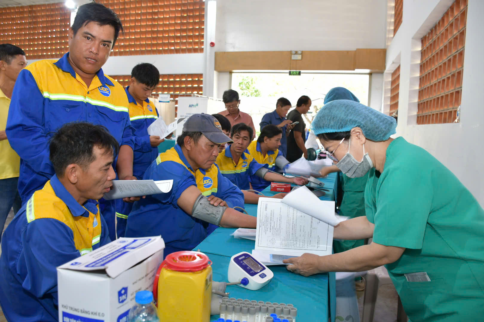 Chương trình khám sức khỏe diễn ra tại khuôn viên trụ sở Dương Quảng Hàm (Phường An Nhơn) và Lý Thường Kiệt (Phường Tân Hòa). Với đặc thù công việc thường xuyên tiếp xúc với môi trường độc hại, nặng nhọc, người lao động UDC luôn được Ban lãnh đạo công ty đặc biệt quan tâm, tổ chức khám bệnh nghề nghiệp và khám sức khỏe định kỳ 2 lần/ năm. Trong đợt khám lần này, đội ngũ y bác sĩ đã thực hiện quy trình kiểm tra sức khỏe chuyên sâu cho công nhân, bao gồm: khám lâm sàng (mắt, tai, mũi, họng, răng hàm mặt, da liễu); chẩn đoán hình ảnh và thăm dò chức năng (Chụp X-quang phổi, đo điện tâm đồ); xét nghiệm cận lâm sàng (xét nghiệm máu, nước tiểu) để tầm soát các bệnh lý nội khoa, tiểu đường, mỡ máu và các chỉ số chức năng gan, thận.
