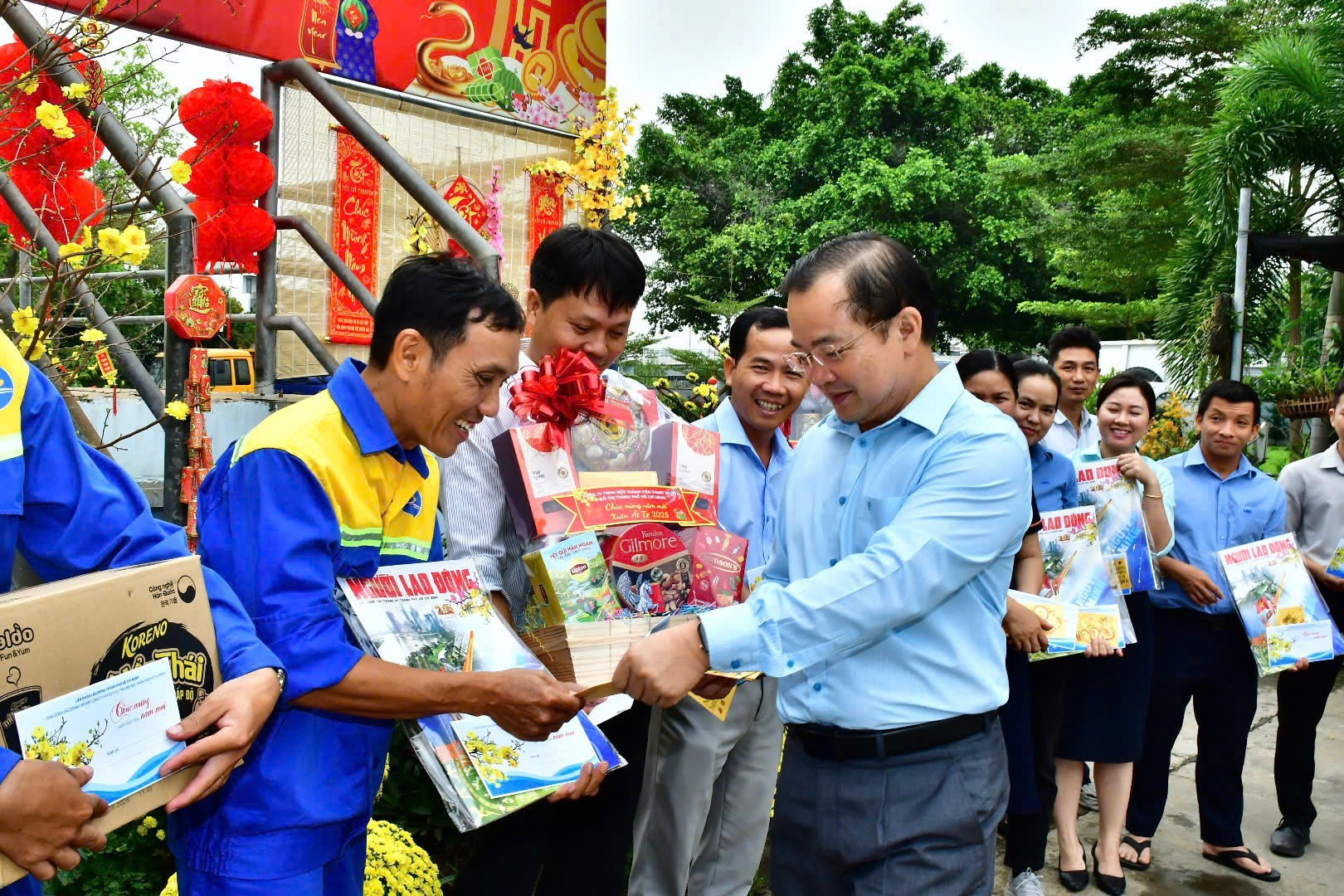 Lãnh đạo UDC thăm và tặng quà cho các công nhân trạm bơm trực Tết