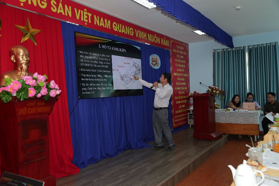 Các thí sinh đang bảo vệ đề tài sáng kiến cải tiến kỹ thuật năm 2022