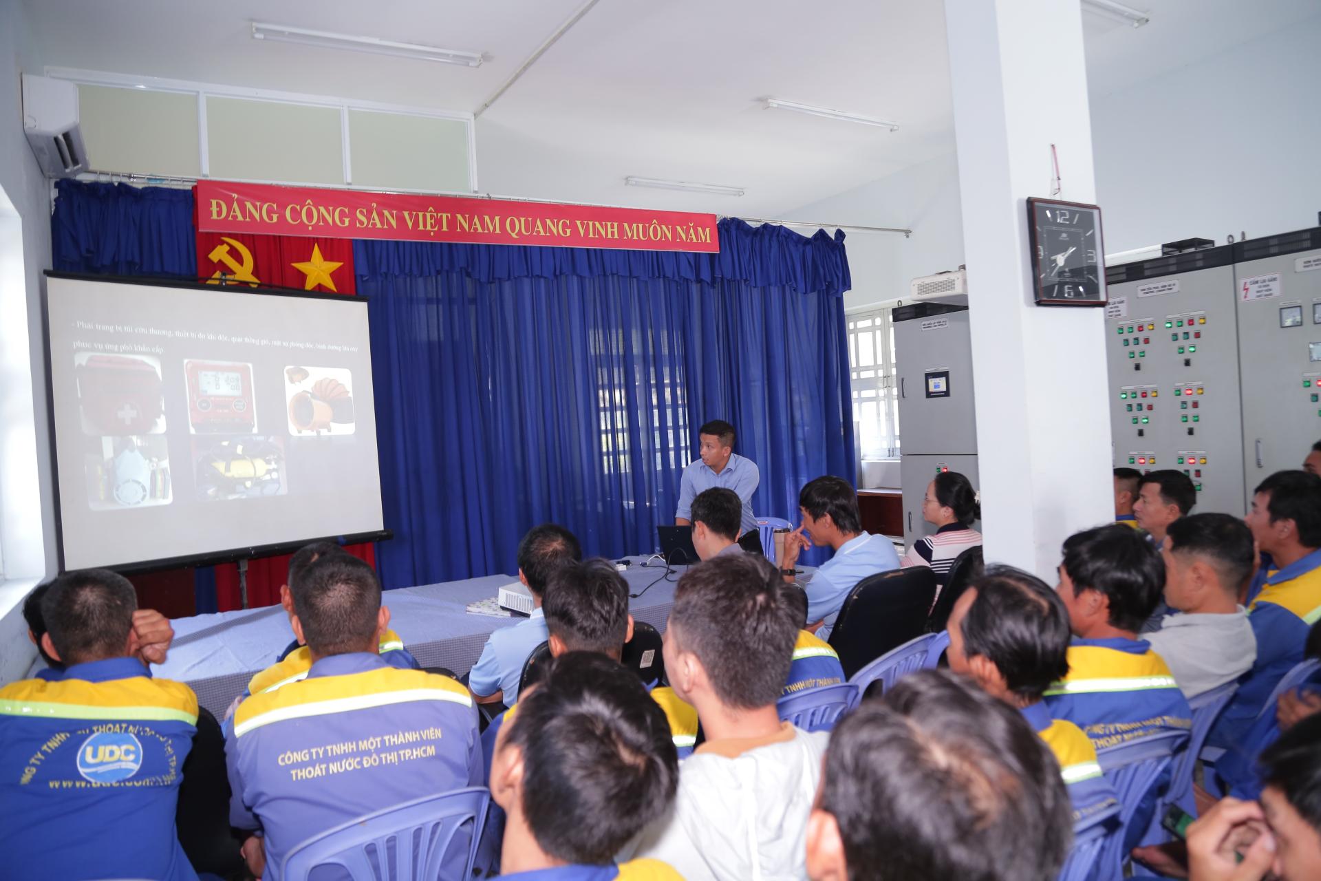 Ngày 28/03/2026, tại Trạm PS2, Xí nghiệp Vận hành hệ thống thoát nước thải Phú Lâm, trực thuộc Công ty TNHH MTV Thoát nước đô thị TP.HCM (UDC) đã tổ chức lớp đào tạo chuyên đề về công tác an toàn lao động cho hơn 50 cán bộ, công nhân viên (CB.CNV) trực tiếp sản xuất.